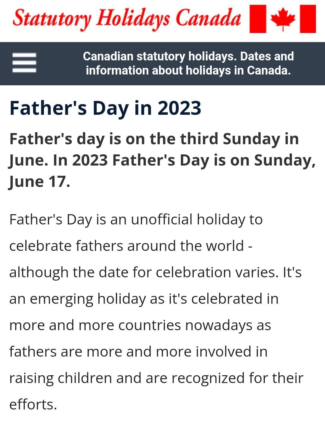 6 When do Canadians celebrate Father's Day?