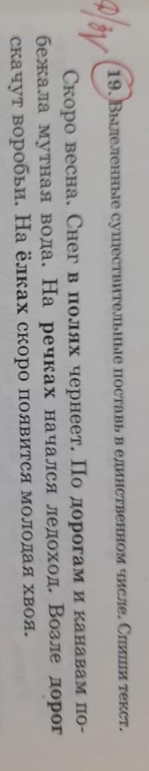 Скоро весна. Снег в поле чернеет. По дороге и канавам побежала мутная вода. На речке начался ледоход. Возле дороги скачут воробьи. На ëлке скоро появится молодая хвоя