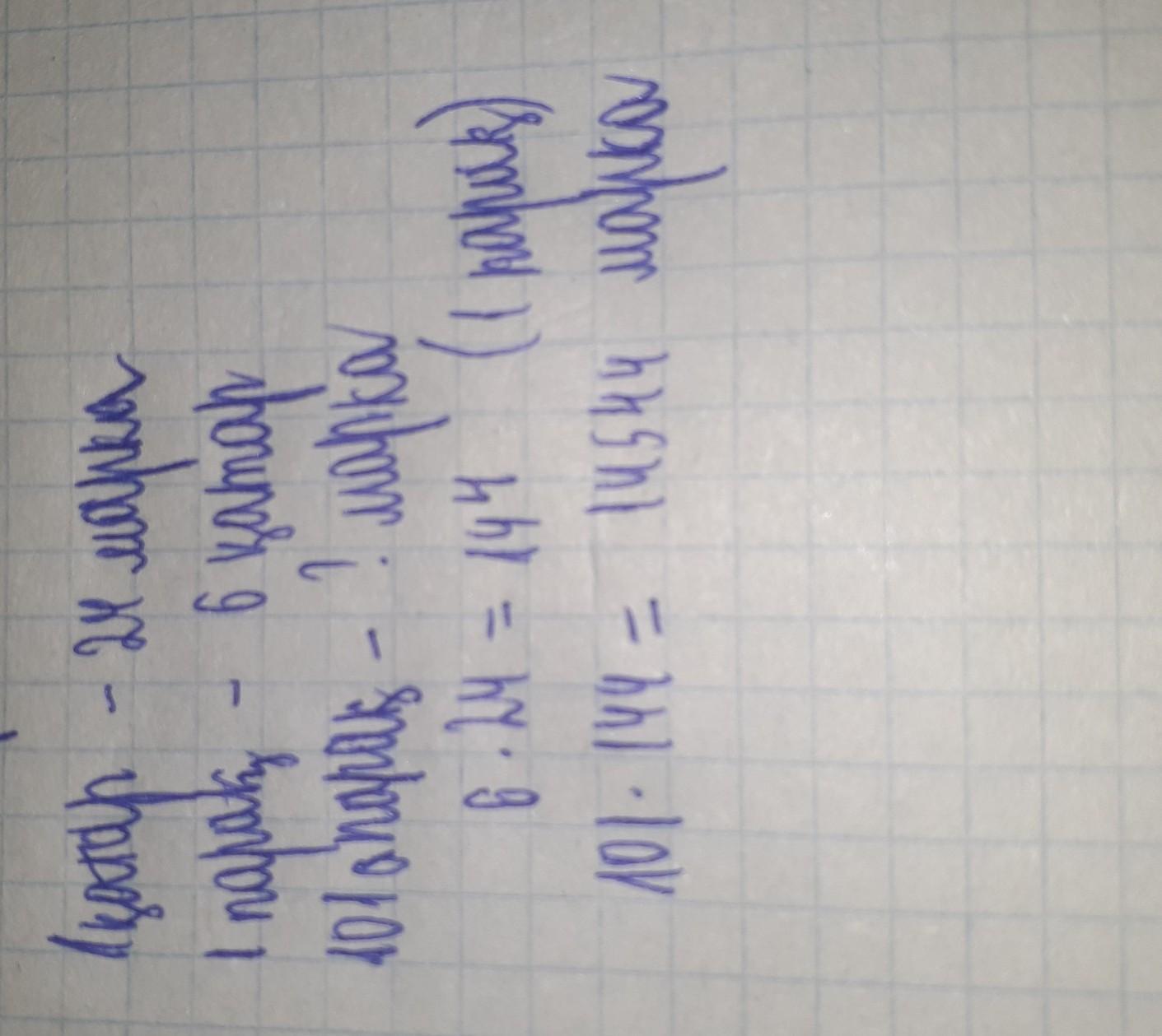 Альбомның әр парағында әр қатарда 24 маркадан 6 қатар маркалар бар. Егер 101 парақ болса, альбомда қанша марка бар?