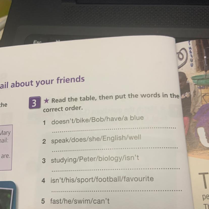 Read the table , then put the words inn the correct order