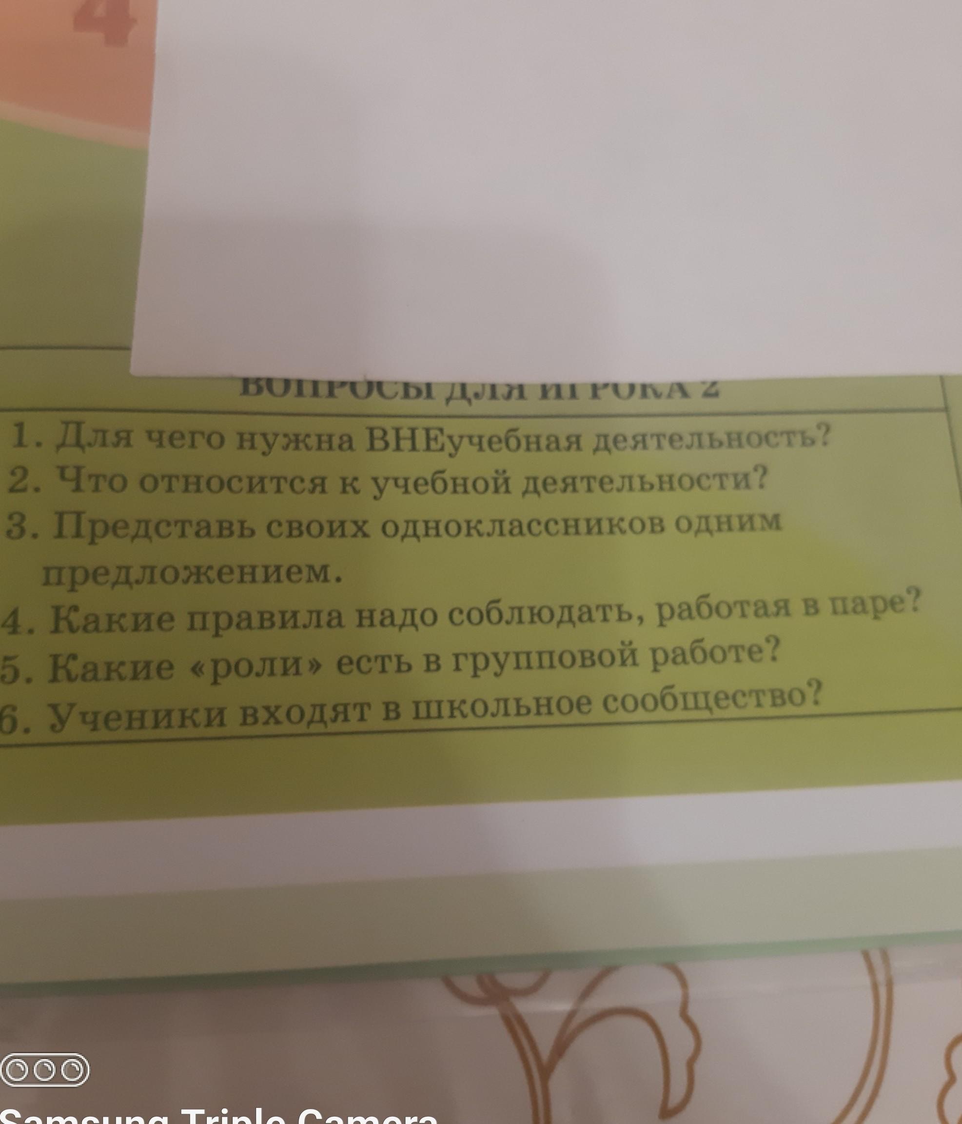 ВОПРОСЫ для иг rUNA Z 1. Для чего нужна ВНЕучебная деятельность? 2. Что относится к учебной деятельности? 3. Представь своих одноклассников одним предложением. 4. Какие правила надо соблюдать, работая в паре? 5. Какие роли» есть в групповой работе? 6. Ученики входят в школьное сообщество?
