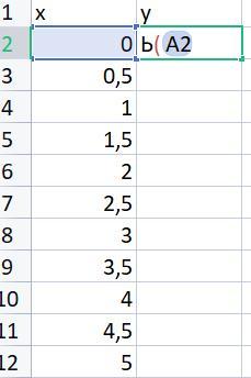 =ЕСЛИ(И(A2>=0;A2<=1);КОРНИ(A2);ЕСЛИ(И(A2>1;A2<=3);1;ЕСЛИ(И(A2>3;A2<=5)) ;СТЕПЕНЬ(A2−4;2);0)))