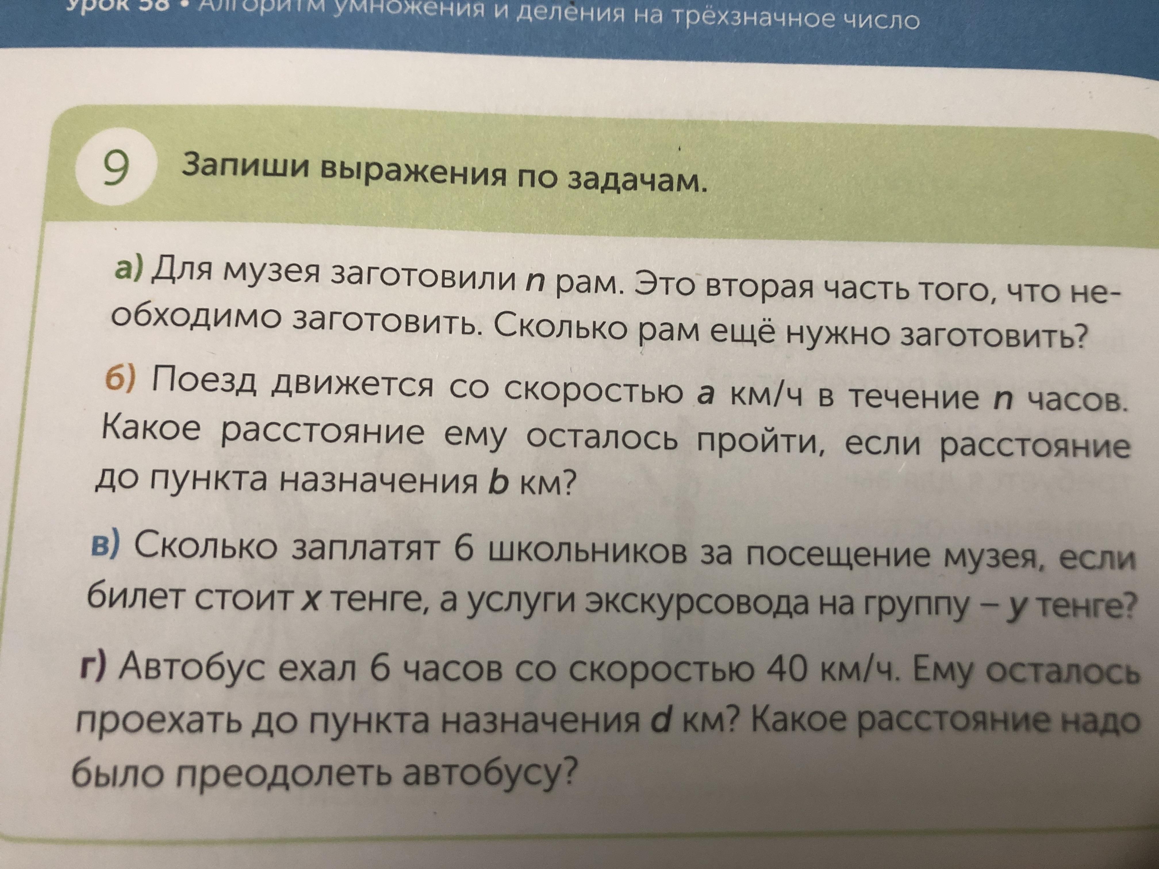 Запиши выражение по задачам. А)Для музея заготовили n рам.Это вторая часть того что необходимо заготовить.Сколько Рам еще нужно заготовить?