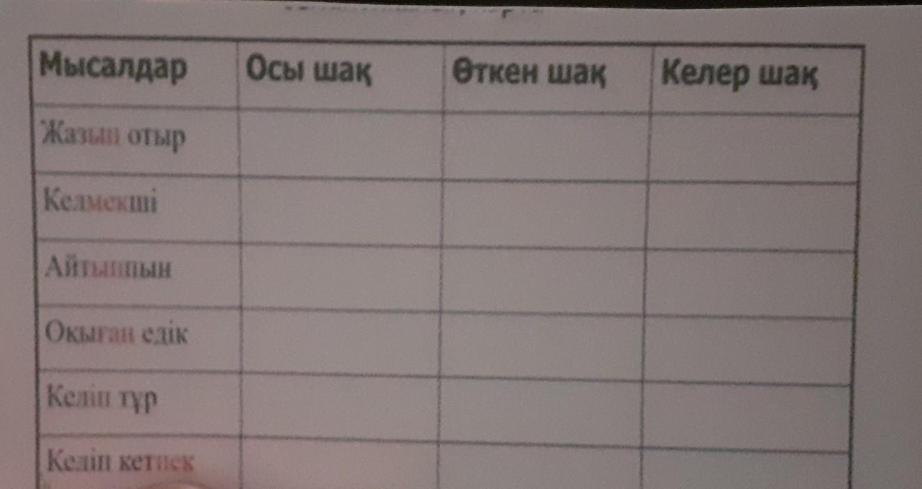 Поставить в настоящем,прошедшем,будущем временем(Осы шақ,Өткен шақ,Келер шақ)