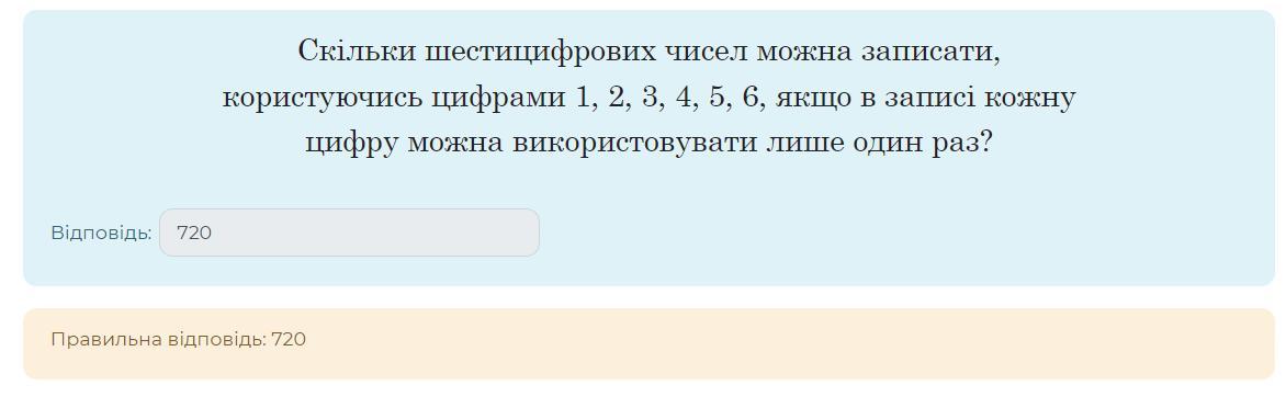 Скільки шестицифрових чисел можна записати, користуючись цифрами 1, 2, 3, 4, 5, 6, якщо в записі кожну цифру можна використовувати лише один раз?