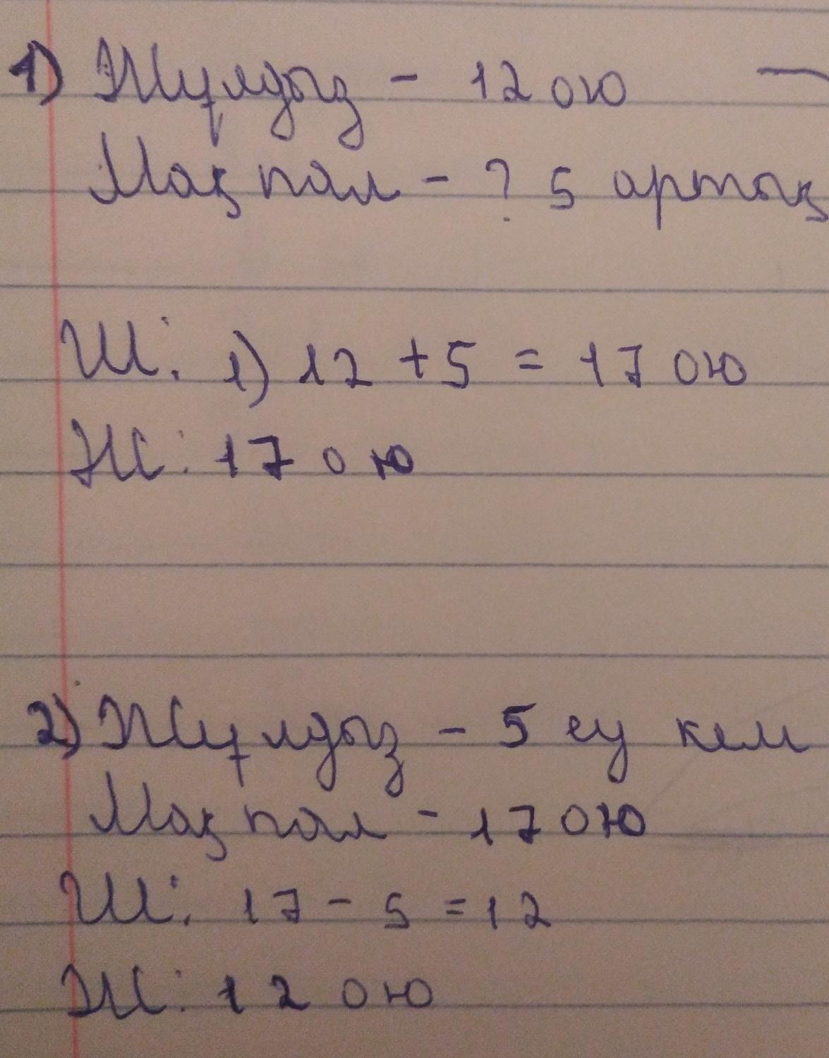 Одан 2. Есептің сызбасын сал және оны шығар. Жұлдыз әр түсті қағаздан 12 ою, ал Мақпал 5-еуі артық ою ойды. Қыздар қағаздан барлығы неше ою ойды? Осы есепке кері есеп құрастыр және оны шығар.