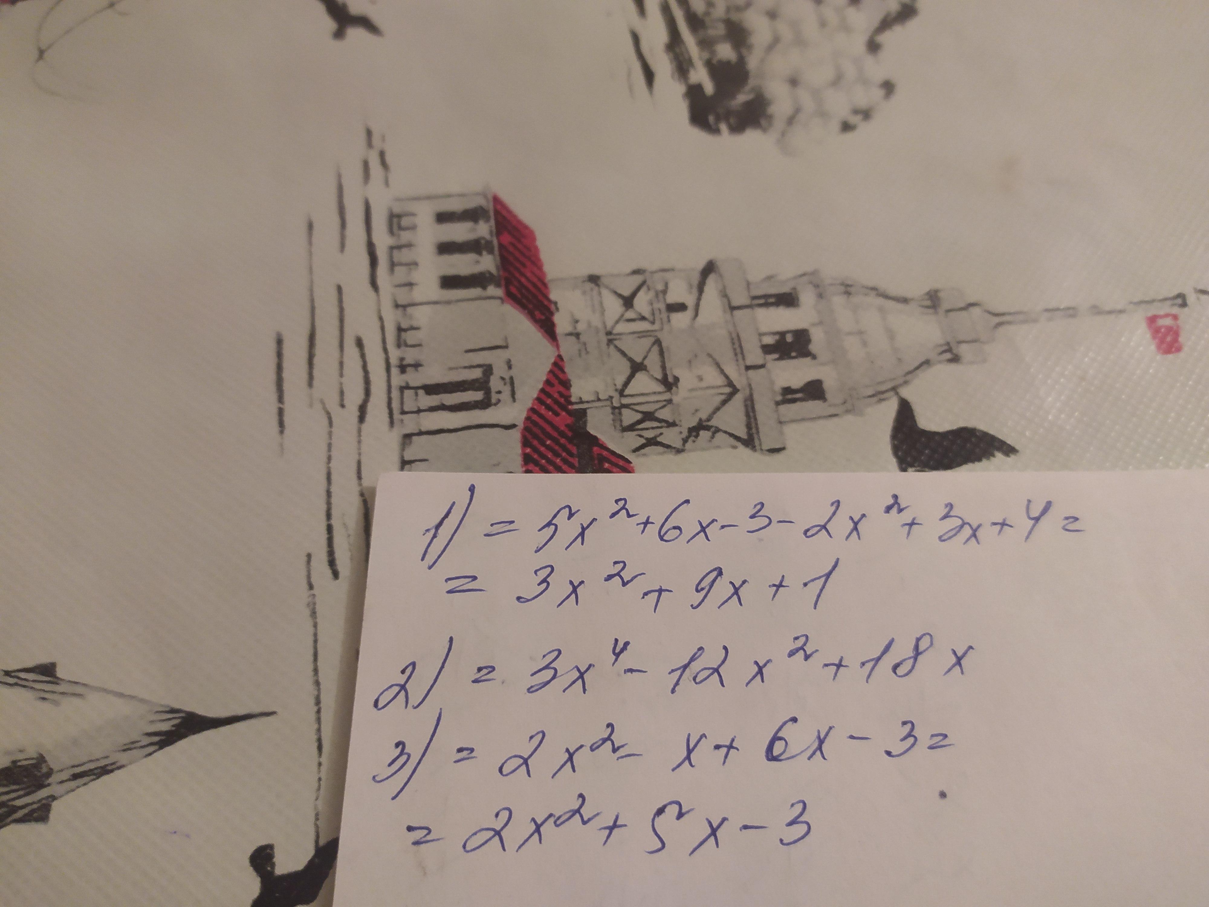 1) (5x 2 +6x–3) – (2x 2 –3x–4); 2) 3x(x 3 –4x+6); 3) (x+3)(2x–1)