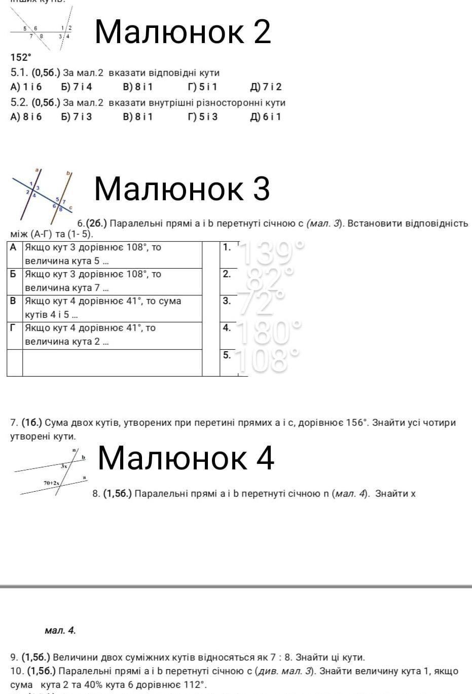 9)Суміжні кути — це пара кутів, які доповнюють один одного до 180 градусів. 7+8=15 180:15=12 12 помножити на 7 =84 12 помножити на 8=96 або 180-84=96