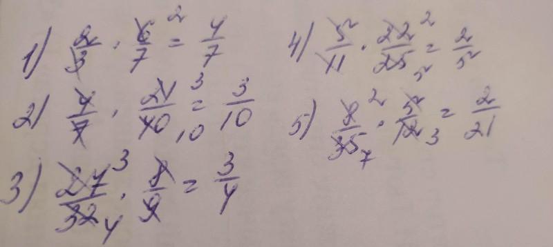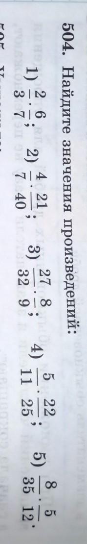 504. Найдите значения 26 4 21 2) 3 7 o 7 7 40 40 1) произведений: 27 8 32 ; 3) 9 : 4) 5 22 11 25 5) 8 5 35 12