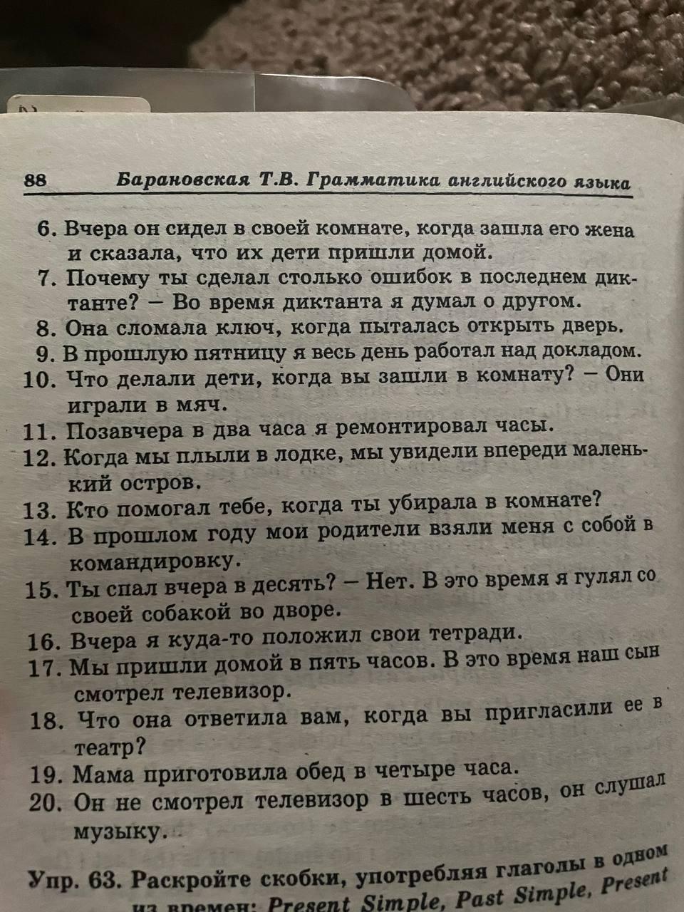 Переведите на английский язык ,употребляя глаголы в форме Past Simple или В Present Continuous. c 6 - 20.