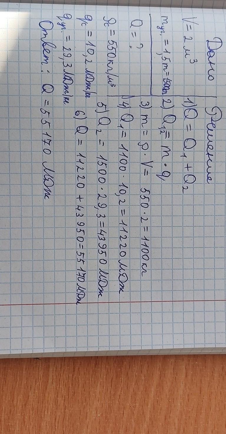 К зиме заготовили сухие сосновые дрова объемом 2 м3 и каменный уголь массой 1,5 т. Сколько теплоты выделиться в печи при полном сгорании в ней заготовленного топлива?