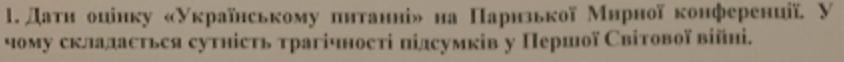 Ответ: 1.Окремо «українське питання» на конференції не розглядалося. Воно виникало під час розгляду польського та російського питань. Справа Східної Галичини була єдиною проблемою, щодо якої Паризька мирна конференція офіційно зверталася до дипломатів УНР.