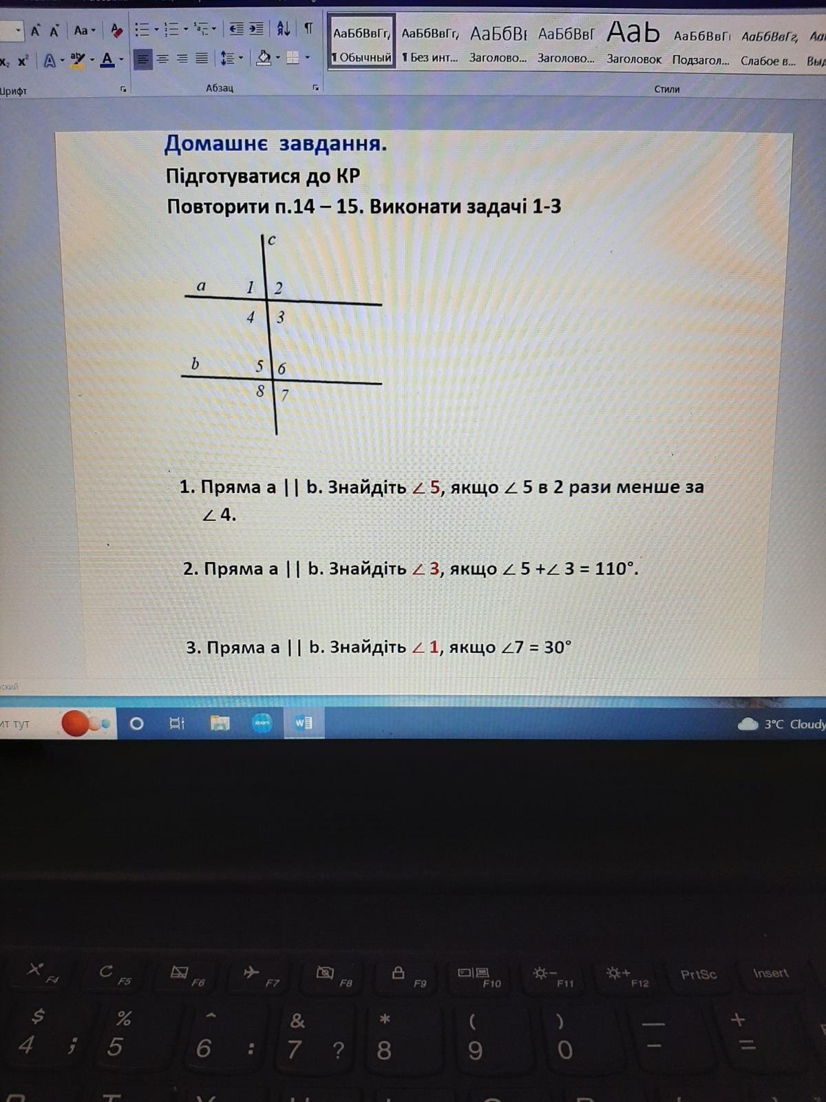 3. кут 1=30°, бо кут 7 вертикальний з кутом 5, тому вони рівні, а кут 5 рівний з кутом 1 як відповідні.