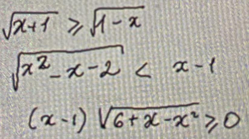 x+1 >= 1 - x возносим обе стороны в квадрат, знак не меняем
