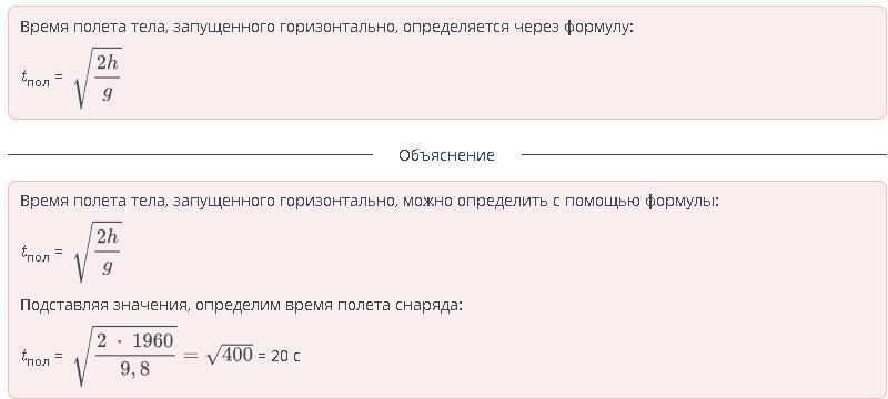 Движение тела под действием силы тяжести С вершины горы со скоростью 50 м/с на высоте 1960 м горизонтально земной поверхности выстрелили из пушки. Через какое время снаряд из пушки упадет на землю? Принять g = 9,8 м/с2, сопротивление воздуха не учитывать.