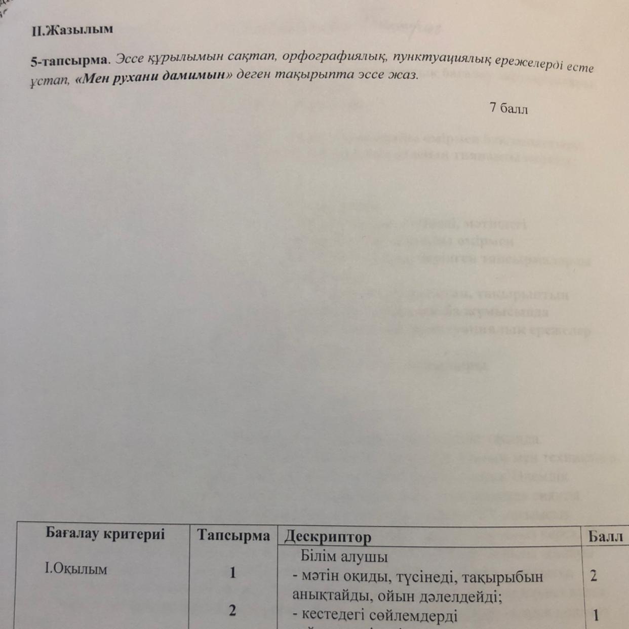 5-тапсырма. Эссе құрылымын сақтап, орфографиялық, пунктуациялық ережелерді есте