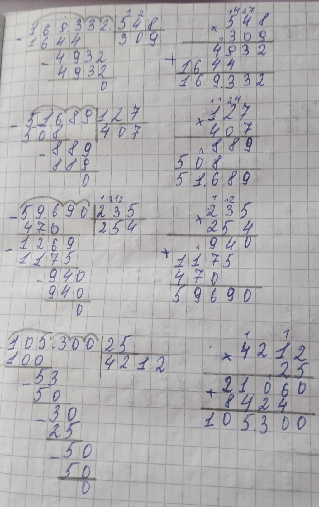 ДОМАШНЕЕ ЗАДАНИЕ 10 Вычисли с проверкой в столбик. 169 332: 548 51 689: 127 59 690:235 105 300:25