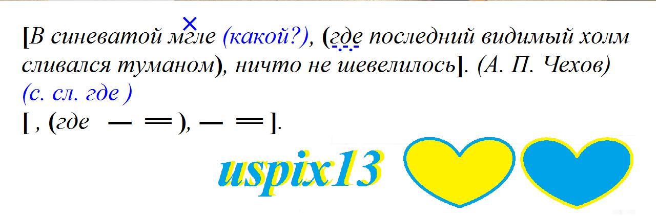 142. Спишите сложноподчиненные предложения с придаточной опреде- схемы предложений. Обратите внимание на знаки препинания в них. ная часть. Подчеркните союзные слова как члены предложения. Составьте лительной. Найдите слово в главной части, к которому относится придаточ- азец. Всиневатой мгле (какой?)¹, где последний видимый ивался с туманом”, ничто не шевелилось'. (А. П. Чеход какое? , ( 2с. сл. где ), ¹ ]. X