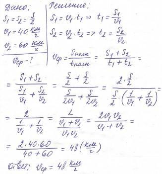 С УСЛОВИЕМ ЗАДАЧИ!!!!!!!першу половину шляху автомобіль рухався зі швидкістю 70 км/год,а другу половину - зі швидкістю 100км/год.Знайдіть середню швидкість руху автомобіля