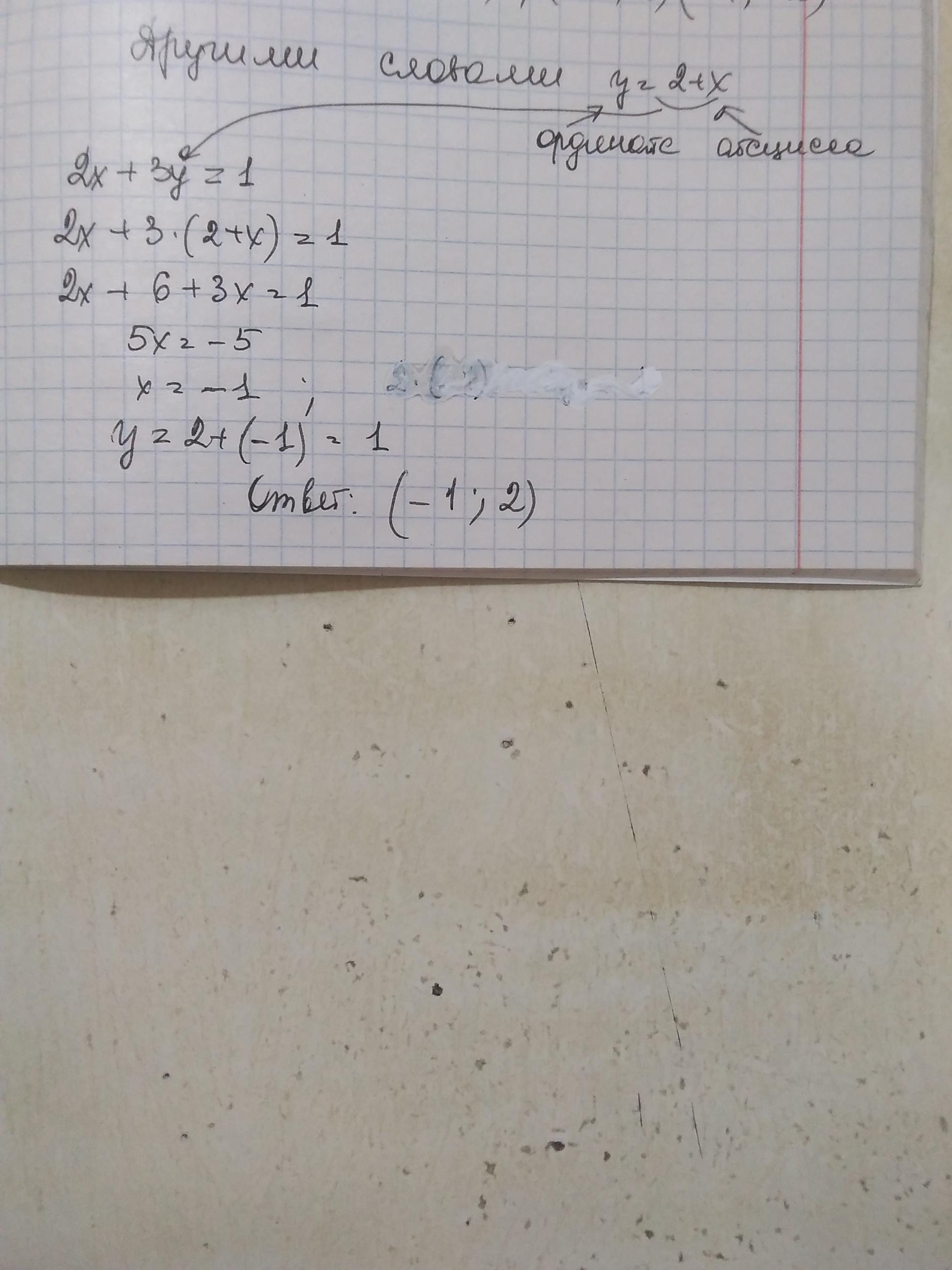 Знайдіть на графіку рівняння 2х+3у=1 точку координати (ординати, як правильно не знаю) якої на 2 більше за її абсцису