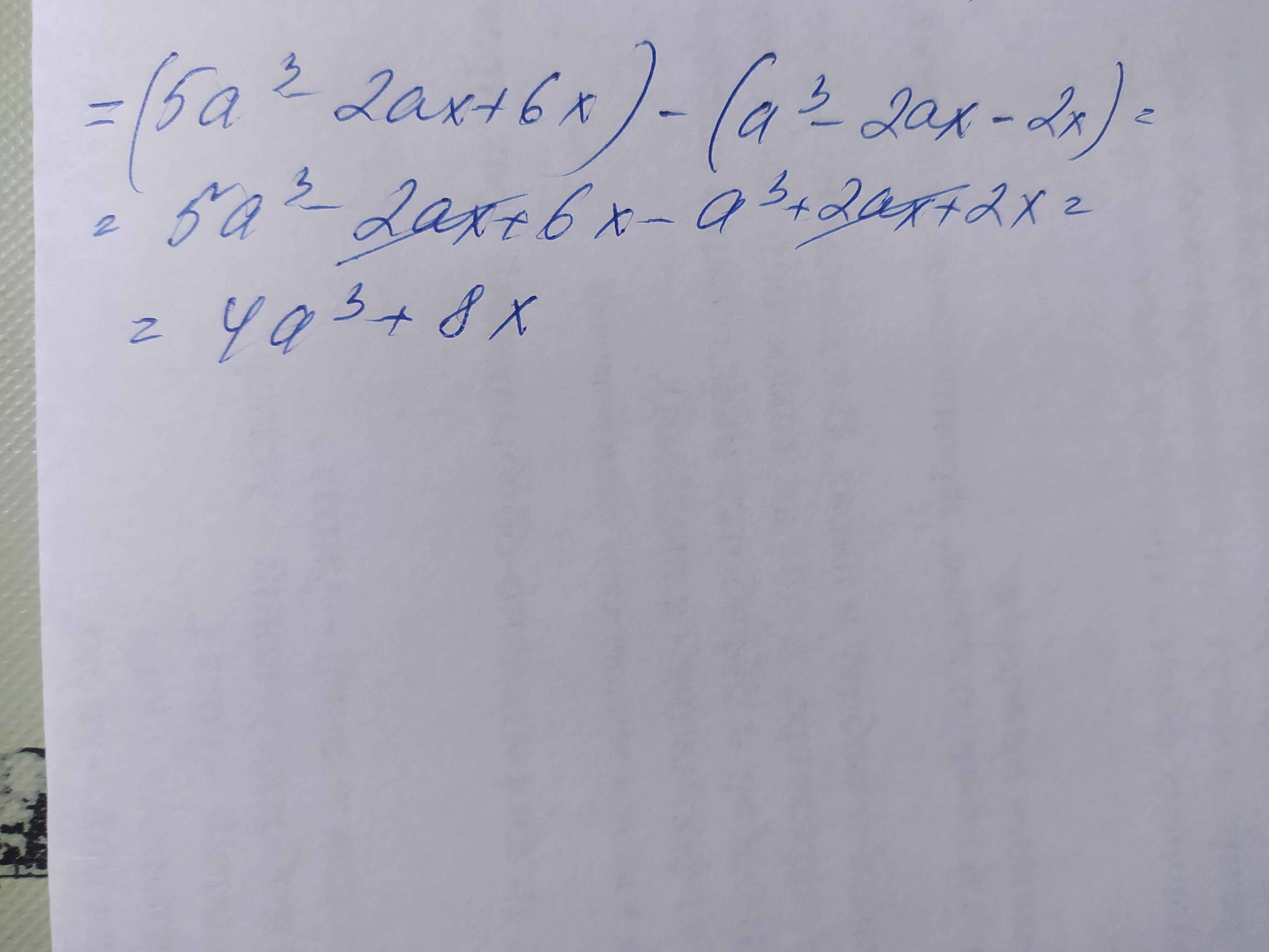 (5а3 – 2ах + 6х) – (*) = 4а3 + 8х