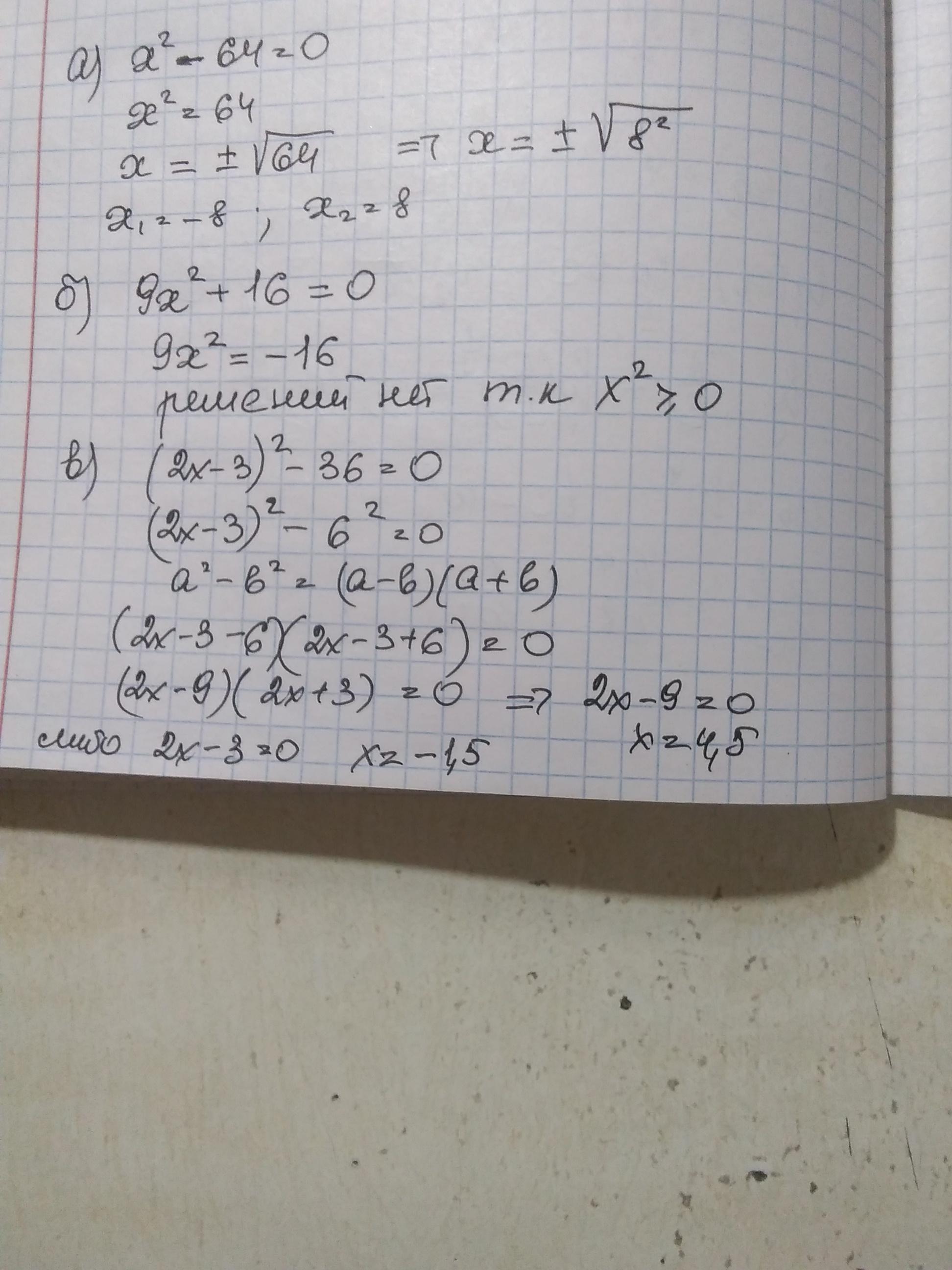 а) ײ-64=0