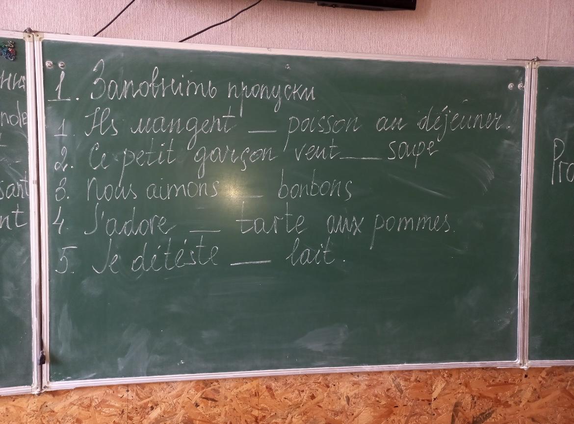 1) du, 2) du, 3) les, 4) un, 5)un