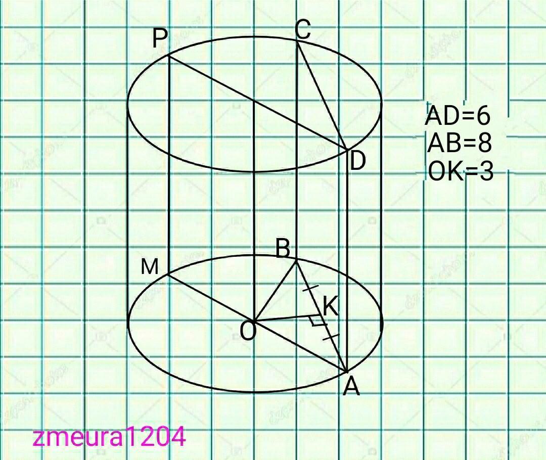 МА=2*ОА=2*5=10 см діаметр циліндра