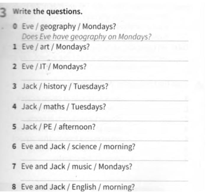 8. Do Eve and jack have English in morning?