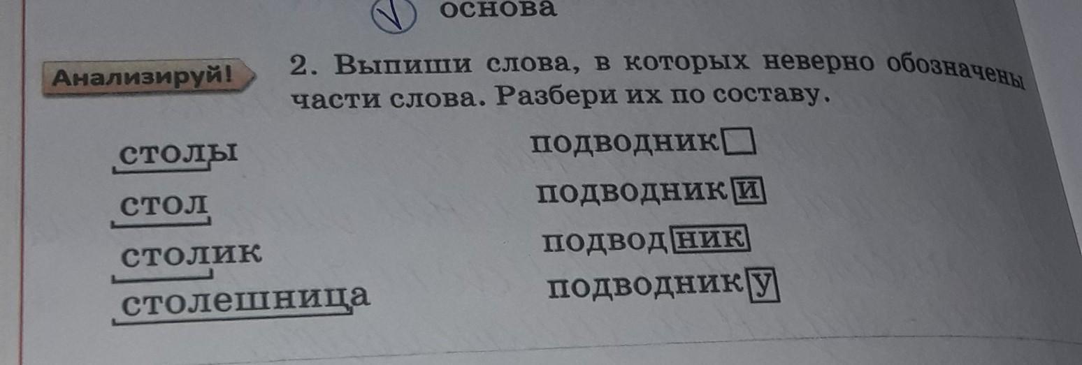 вод — корень, ник — суффикс, нулевое окончание, подводник — основа слова.