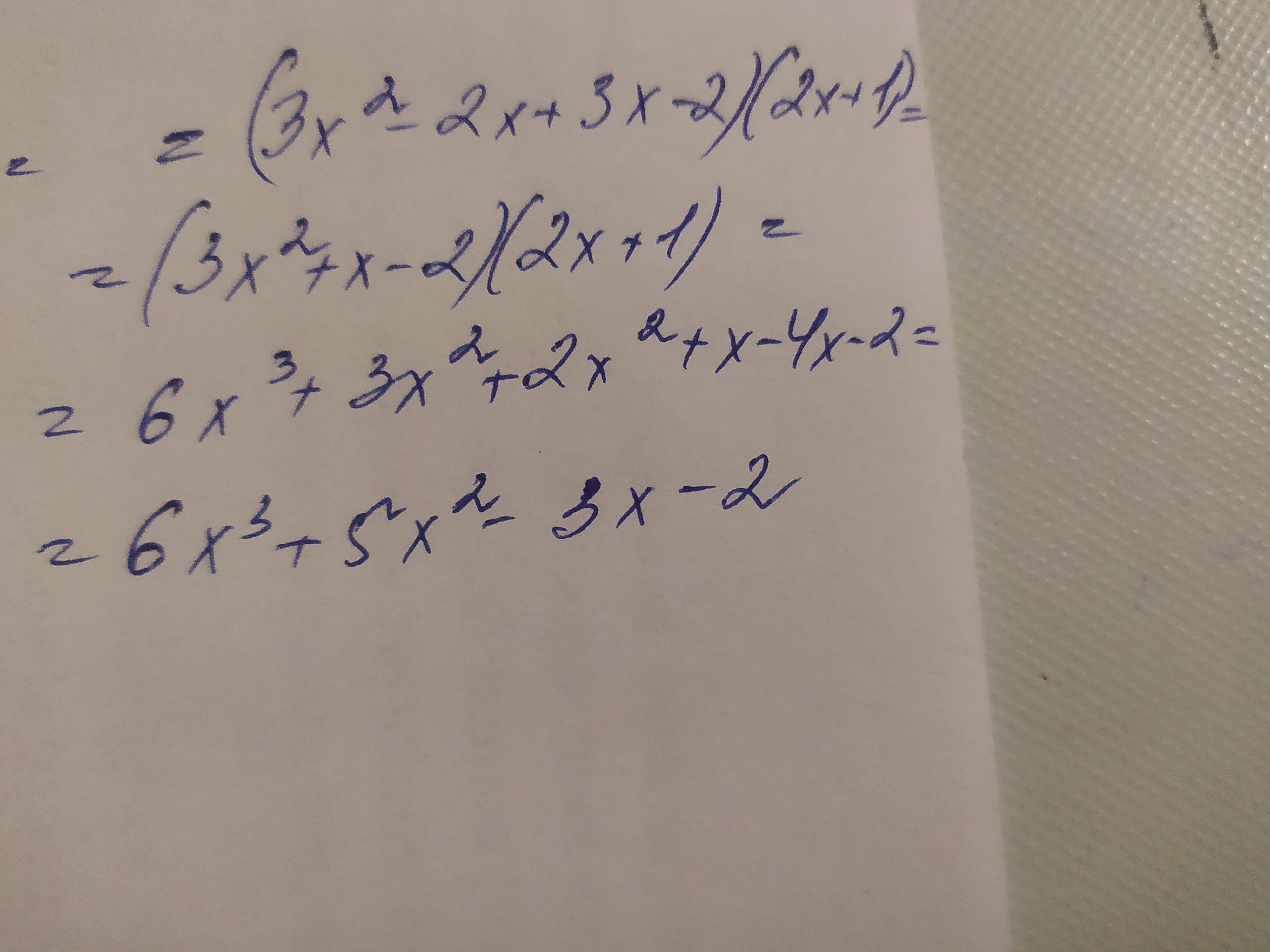 Представьте выражение (x+1)(3x-2)(2x+1) в виде многочлена стандартного вида. Обьясните решение