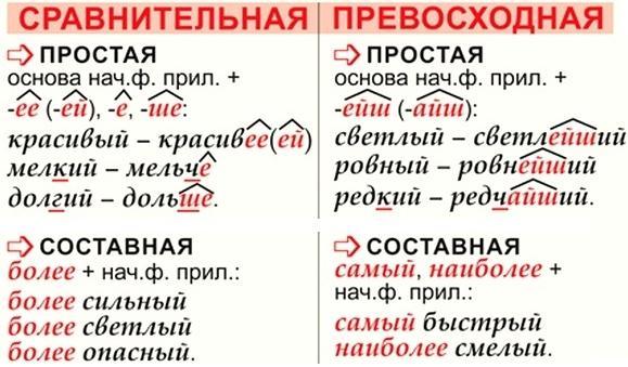 Прилагательные в сравнительной и превосходной степени выделены шрифтом.