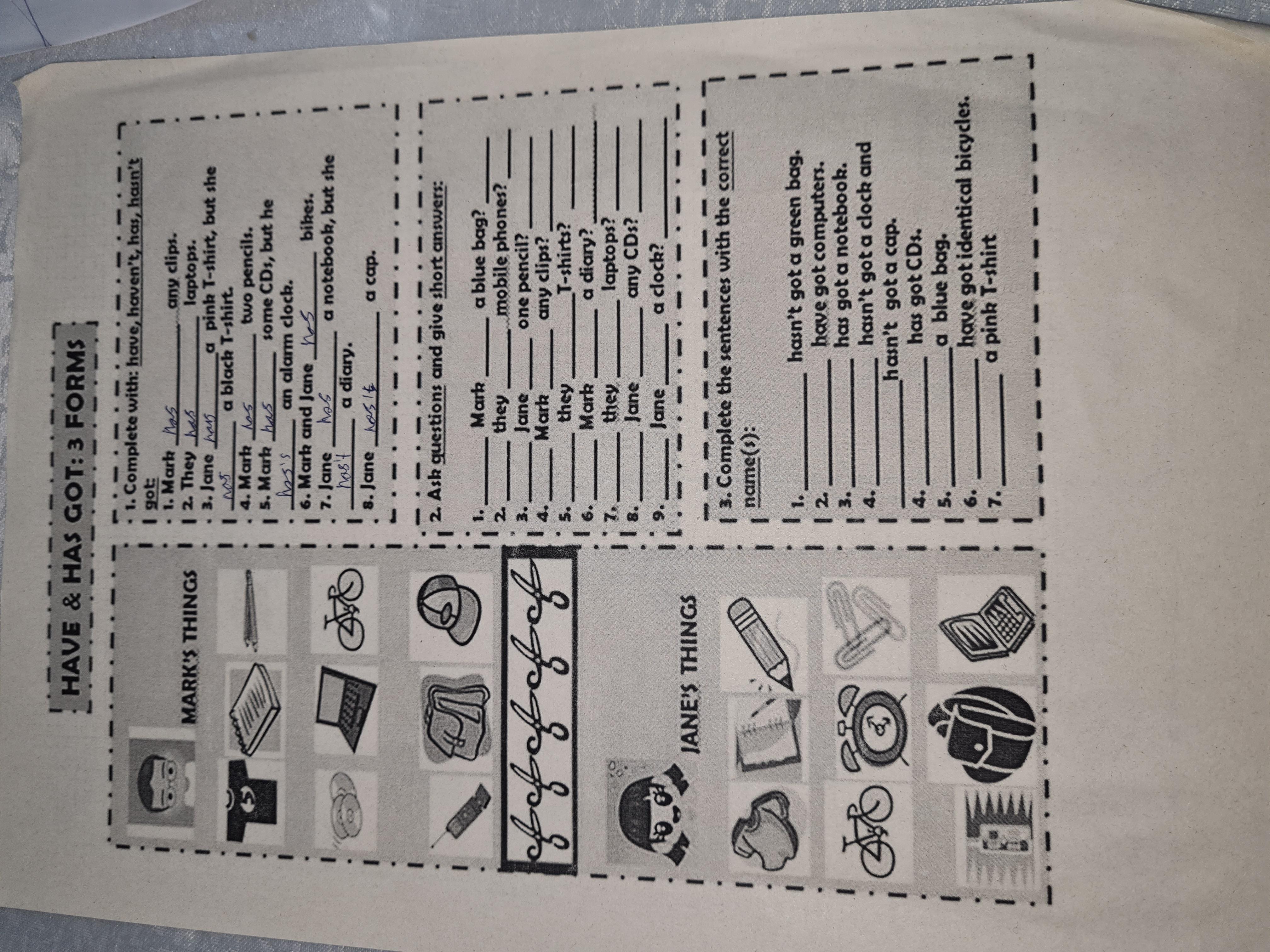 3. Has Jane got one pencil? Yes, she is.