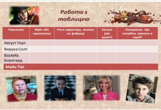 риси характеру і тд. : дурний, жадібний,впав у шоколадне озеро