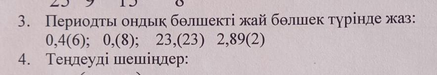 периодты ондық бөлшекті жай бөлшек түрінде жазу 0,4(6); 0,(8); 23,(23); 2,89(2)