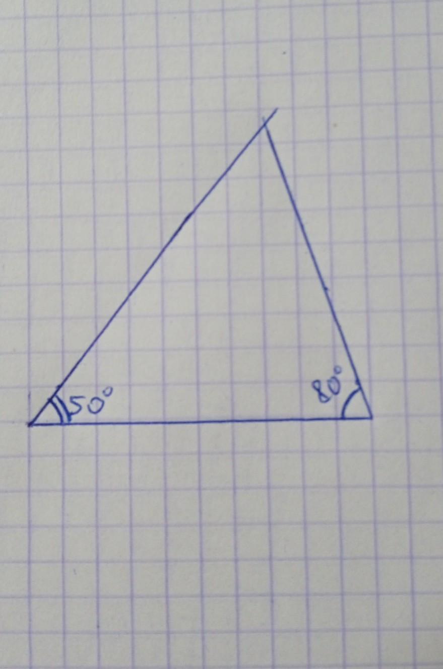 Побудуй трикутник зі стороною 5 см 5 мм і двома прилеглими кутами 50° i 85°.