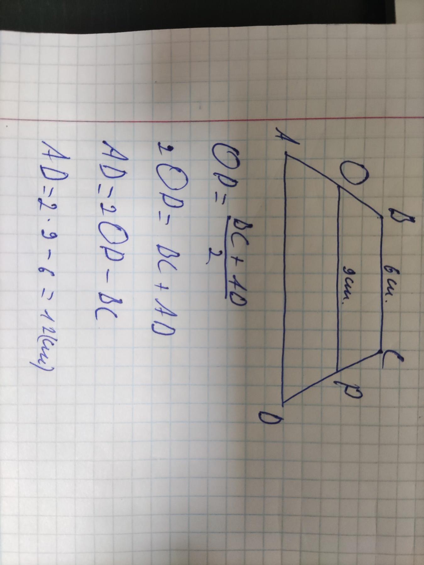 Середня лінія трапеції дорівнює 9 см, а її менша основа ‒ 6 см. Знайдіть більшу основу трапеції.