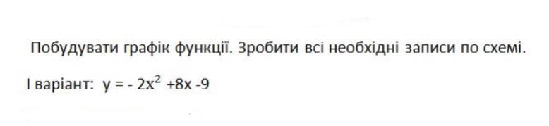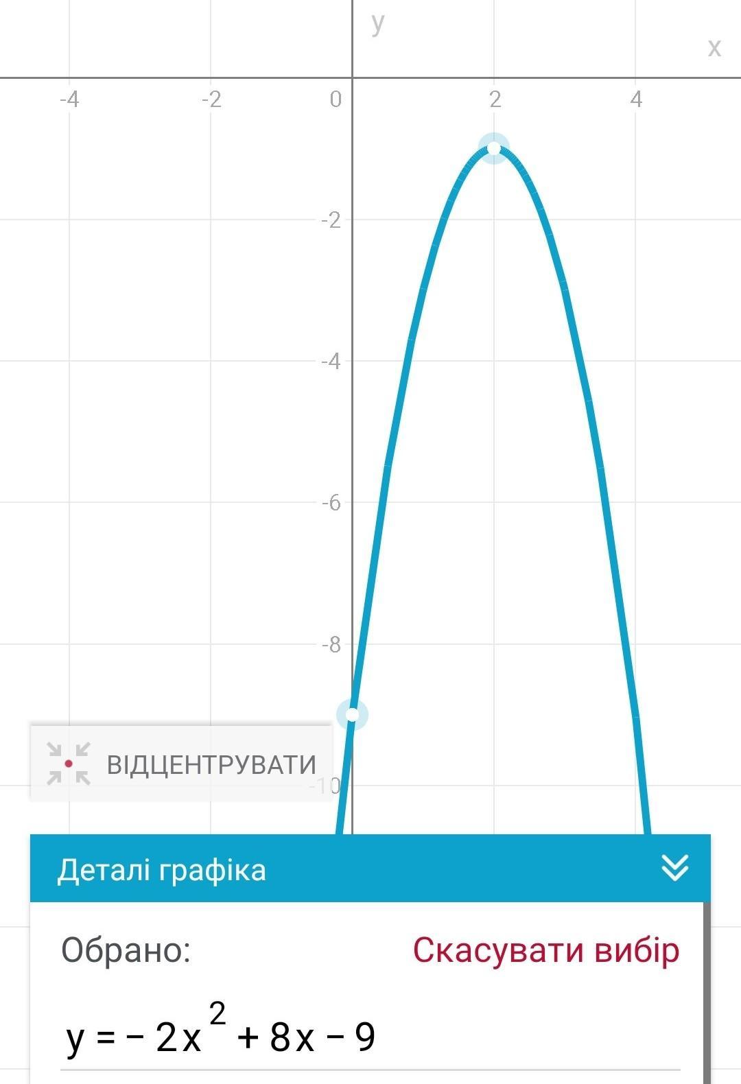 4) Перетин з віссю ординат: y(0) = -2×0²+8×0-9= -9