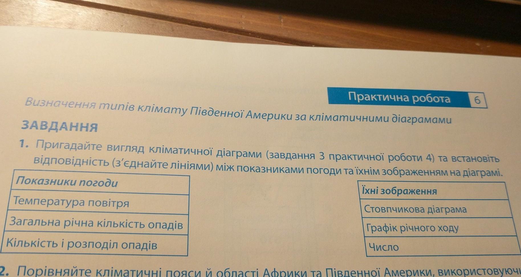 1. Пригадайте вигляд кліматичної діаграми (завдання з практичної роботи 4) та встановіть відповідність (з'єднайте лініями) між показниками погоди та їхнім зображенням на діаграмі