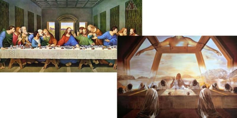 Помогите пожалуйста.Нужно сравнить картины "Тайная вечеря" Сальвадора Дали и Леонардо да Винчи (привести главные аспекты сходства и отличия)