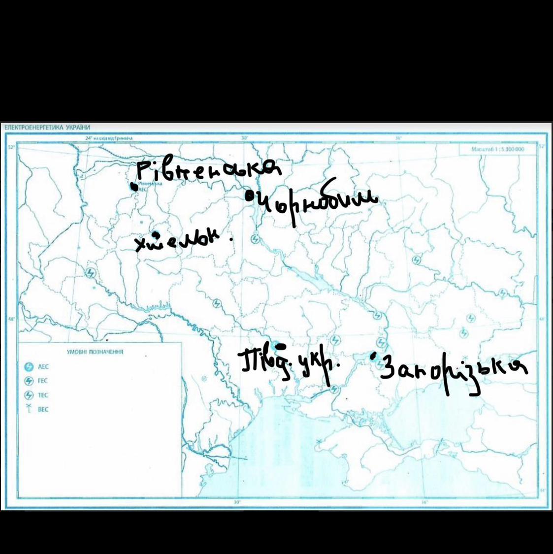 5.1.Позначення на контурній карті України найбільших електростанцій