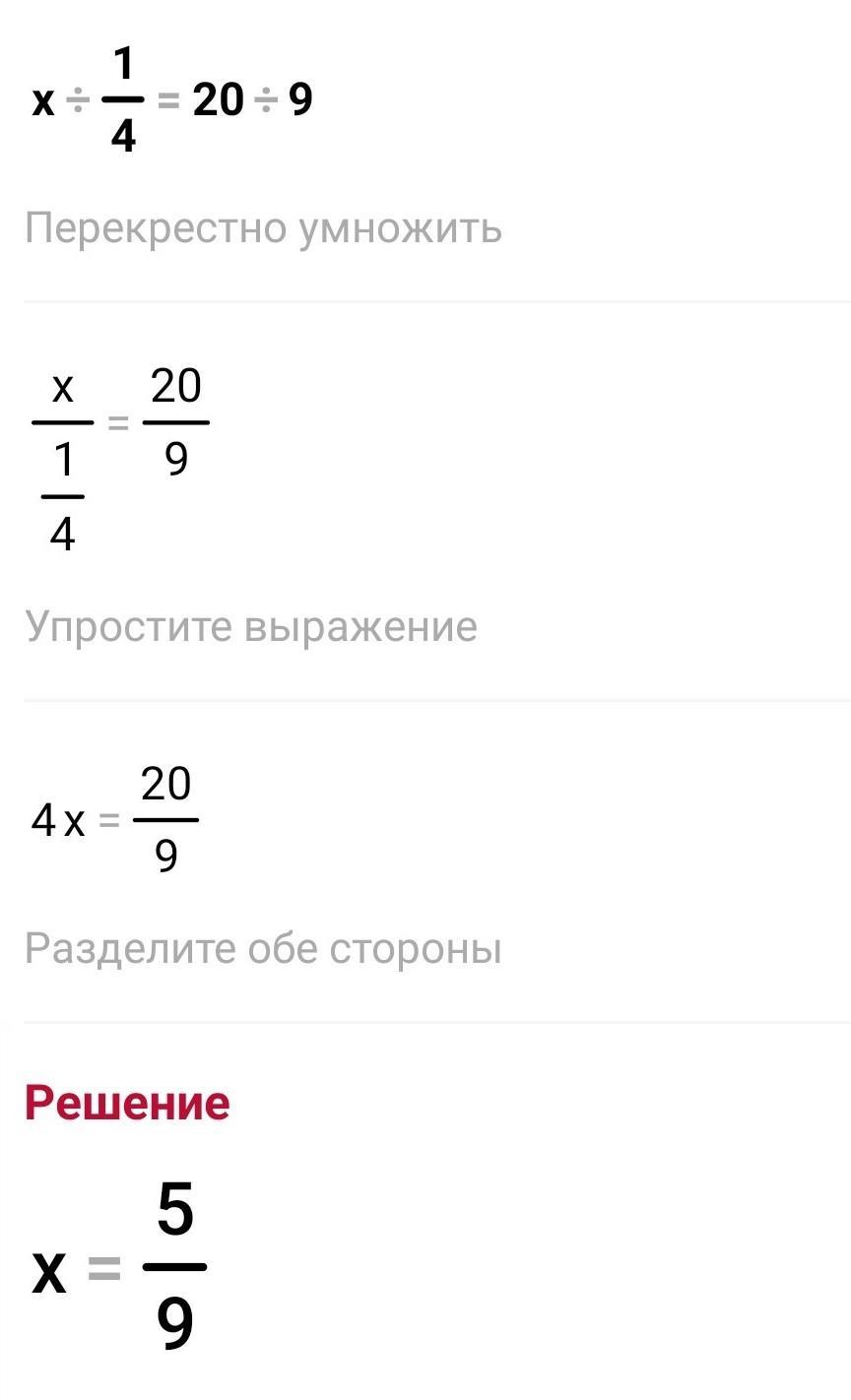 x-:(1)/(4)=20-:9 розписать подробно!!!!!!!!!!!!!!!