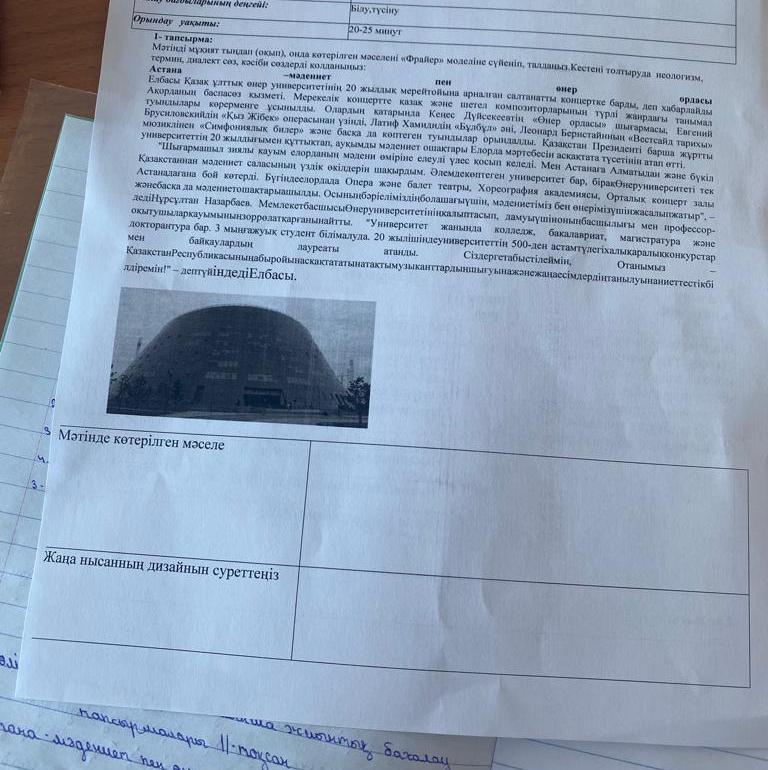 1-тапсырма Мәтінді мұқият тыңдап (оқып), онда көтерілген мәселені «Фрайер» моделіне сүйеніп, талдаңыз. Кестені толтыруда неологизм, термин, диалект сөз, кәсіби сөздерді қолданыңыз: Қазақ тілі бжб 2 токсан пжж помогите