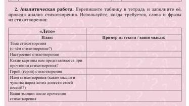 Аналитическая работа. Перепишите таблицу в тетрадь и заполните её,