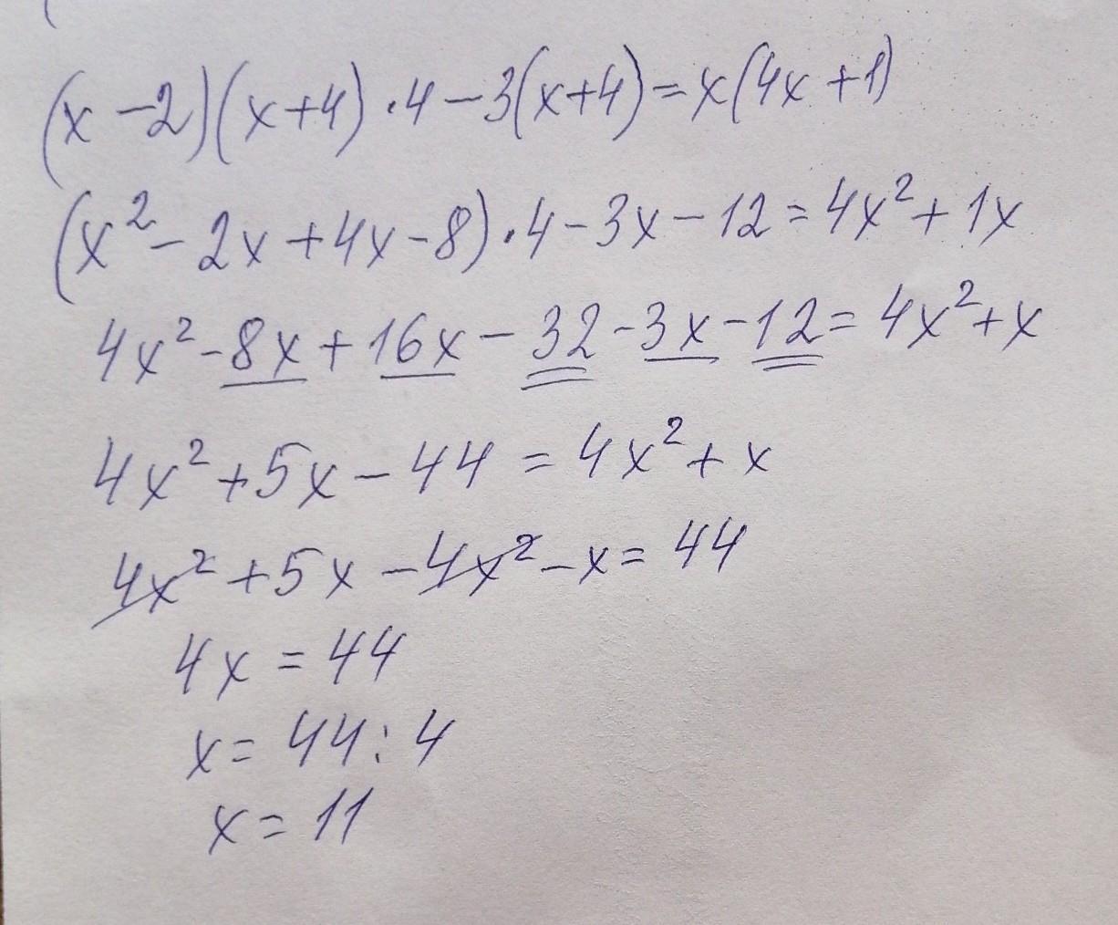 (x-2)(x+4)*4-3(x+4)=x(4x+1).