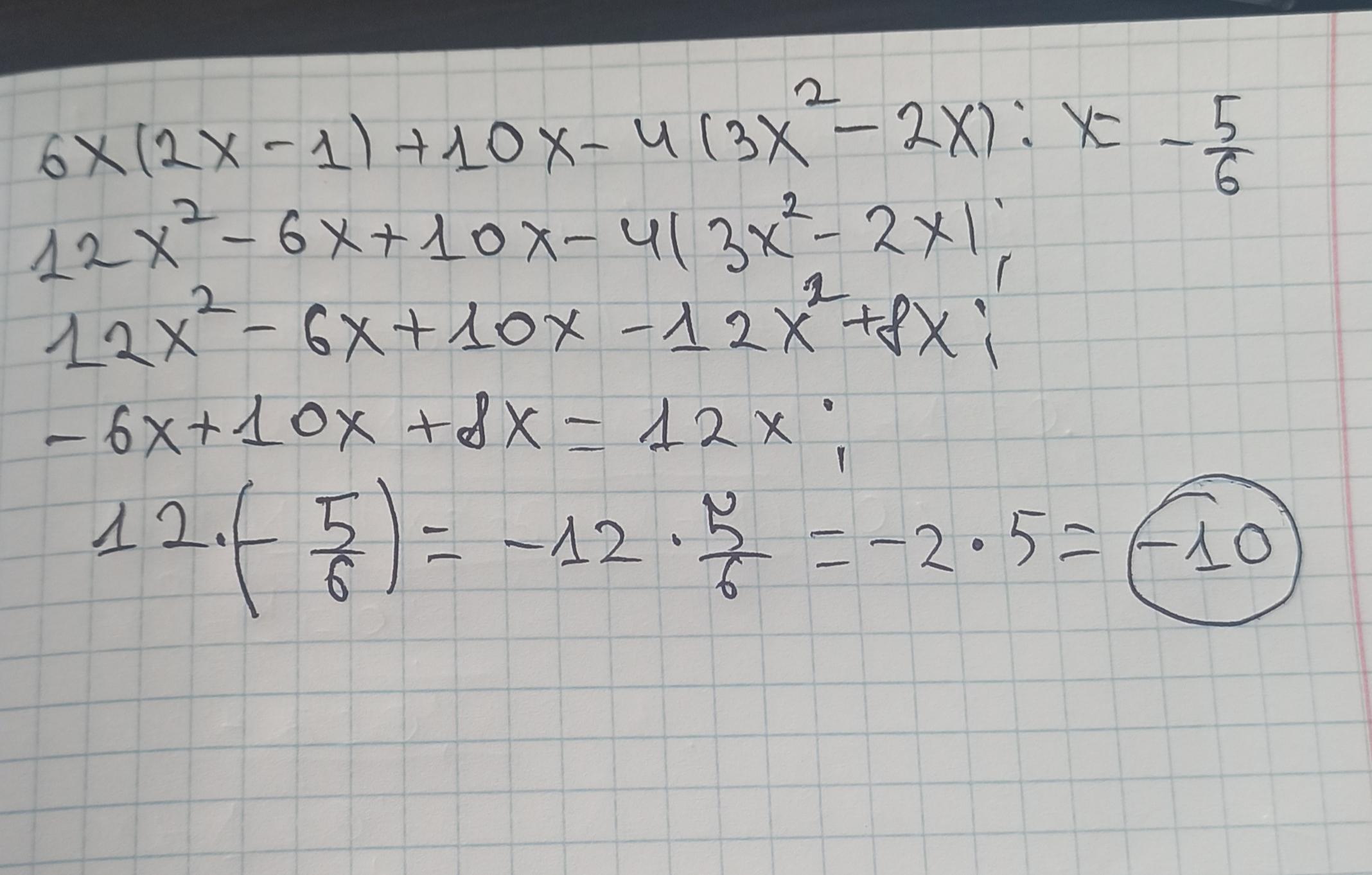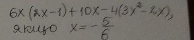 спростіть вираз Та знайдіть його значення 6x(2x-1)+10x-4(3x²-2x), чкщо x=-5/6