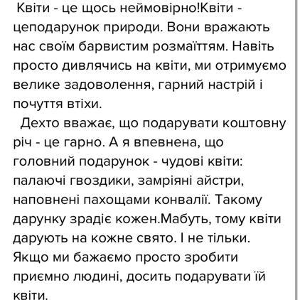 Відповідь на тему твір мініатюра << що я відчуваю коли квітка поруч>>