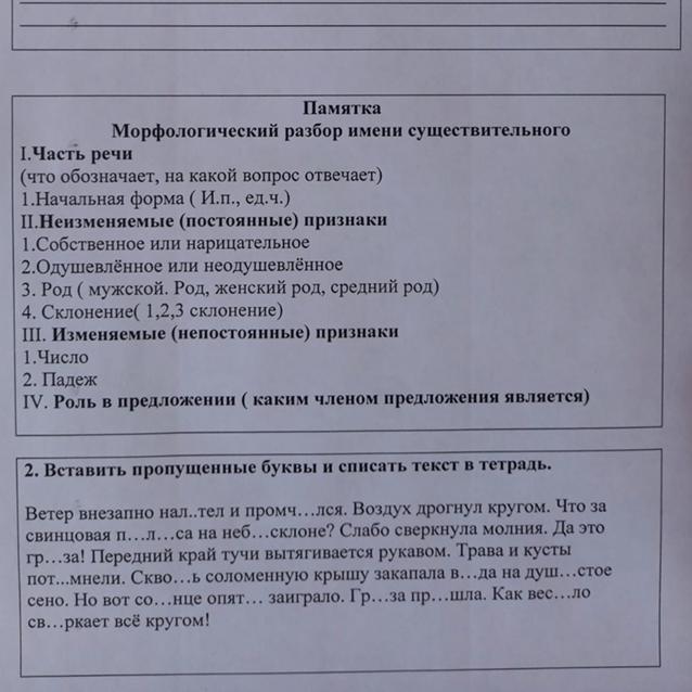 2. Вставить пропущенные буквы и списать текст в тетрадь.