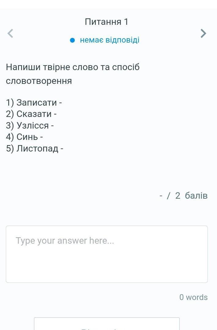 Напиши твірне слово та спосіб словотворення 1) Записати - 2) Сказати - 3) Узлісся - 4) Синь- 5) Листопад -