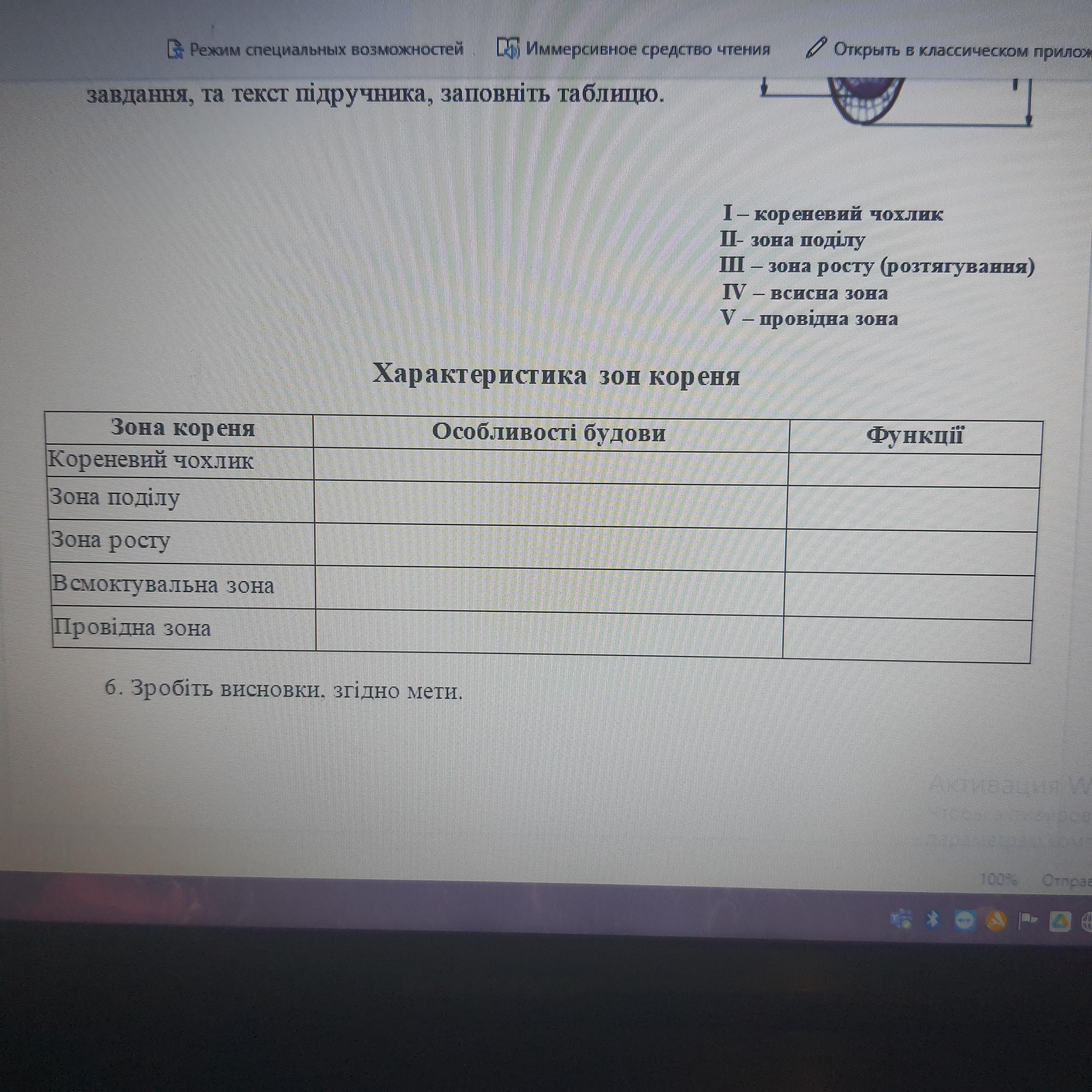 Кореневий чохлик -особливості будови-Корене́вий чо́хлик — багатоклітинний утвір, що прикриває конус наростання кореня. Утворюється з клітин каліптрогену (особлива твірна тканина конуса наростання) або з апікальної меристеми кореня,фунції кореневого чохлика-Кореневий чохлик захищає ростучу зону кореня рослин від механічних пошкоджень, а також сприяє просуванню кореня в ґрунті завдяки ослизненню оболонок зовнішніх клітин.Зона поділу-особливості будови-Зона поділу - довжина 2-3 см, їх клітини активно діляться (твірна тканина). 3. Зона росту (розтягування) - клітини ростуть, збільшуються в довжину і стають циліндричними, в них з'являються великі вакуолі. Сукупний ріст цієї зони створює силу, завдяки якій корінь заглиблюється в ґрунт,фунції зони поділу-Корінь ділиться на кілька ділянок, таких як: зона поділу — в цьому відділі клітини ростуть і розтягуються особливо швидко, що забезпечує швидкий ріст у довжину; зона всмоктування (всисна) — від цієї зони відходять маленькі корінці (вирости клітин), що зумовлює більшу площу поглинання води і розчинених в ній мінеральних .Зона росту -особливості будови-Зона росту (розтягування) - клітини ростуть, збільшуються в довжину і стають циліндричними, в них з'являються великі вакуолі. Сукупний ріст цієї зони створює силу, завдяки якій корінь заглиблюється в ґрунт. Довжина декілька міліметрів,фунції зони росту Функцией зоны роста и растяжения является рост корня в длину. Рост происходит благодаря растягиванию (удлинению) клеток, благодаря чему возникло название зона роста и растяжения. Также именно на этой зоне происходит дифференцировка клеток на разные ткани.Всмоктувальна зона- особливості булови-Вище зони росту розміщена всмоктувальна зона 0,5 — 2 см завдовжки. Вона густо обросла кореневими волосками — тонкими виростками клітин епідермісу 0,2 — 1 см завдовжки. Їх понад 100 штук у всисній зоні. Через них в рослину надходять (всмоктуються) поживні речовини разом з вологою,всмоктувальна зона- фунції-